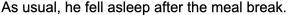 he fell asleep after the meal break