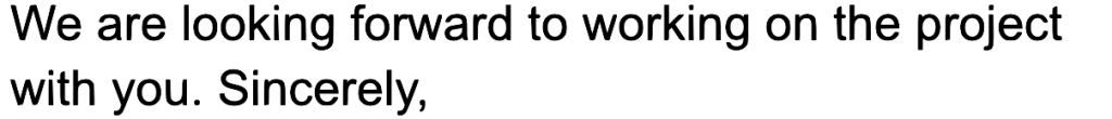 เราตั้งตารอที่จะได้ ทำงานโครงการนี้กับคุณ. ขอแสดงความนับถือ,
